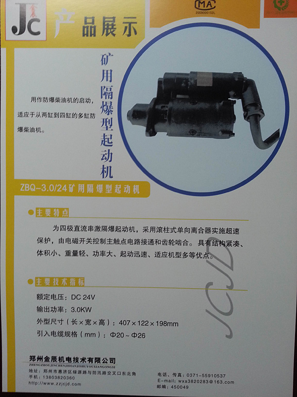 该产品是矿用隔爆型电器设备,作为防爆柴油机的启动装置,可在煤矿井下或其它有甲烷和煤尘等爆炸性混合物的场所使用。